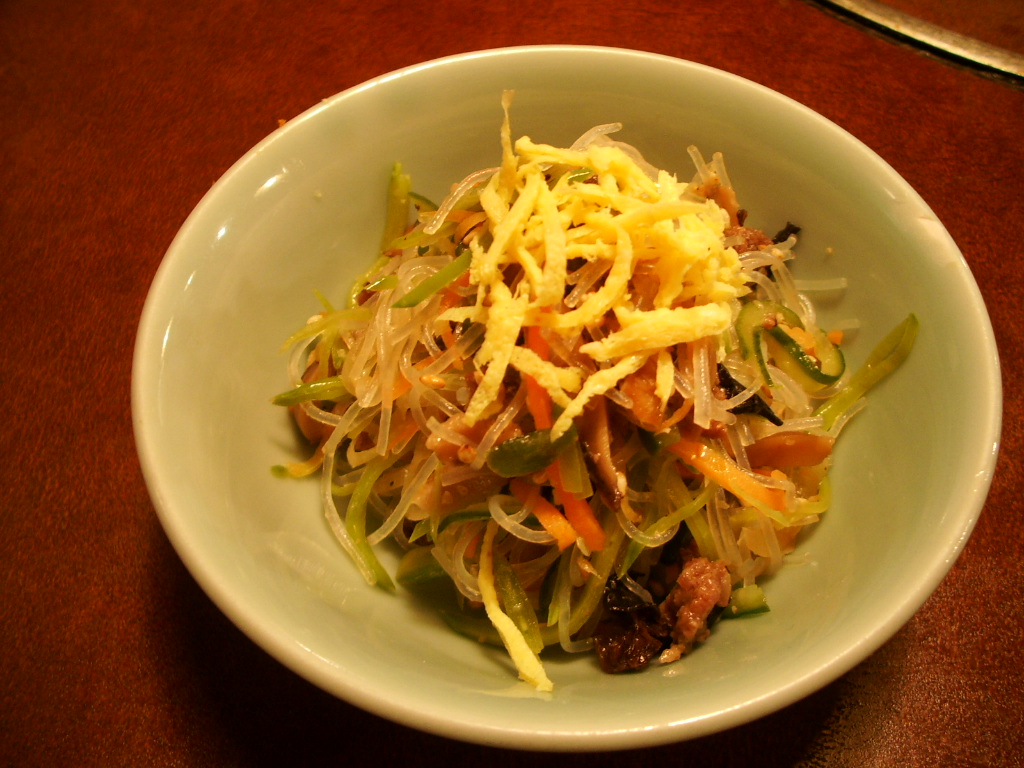 でも、いままで食べたチャプチェとは全く違って、薄味で繊細で、サラダ感覚のさっぱりとした、でも炒め物。みたいな。